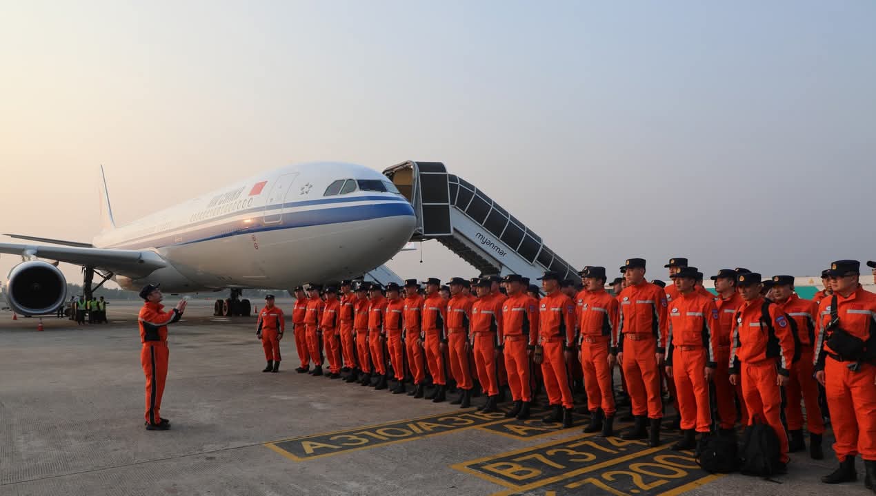 地震発生から42時間後に、近隣諸国からの救助隊員がマンダレー市に到着しました。