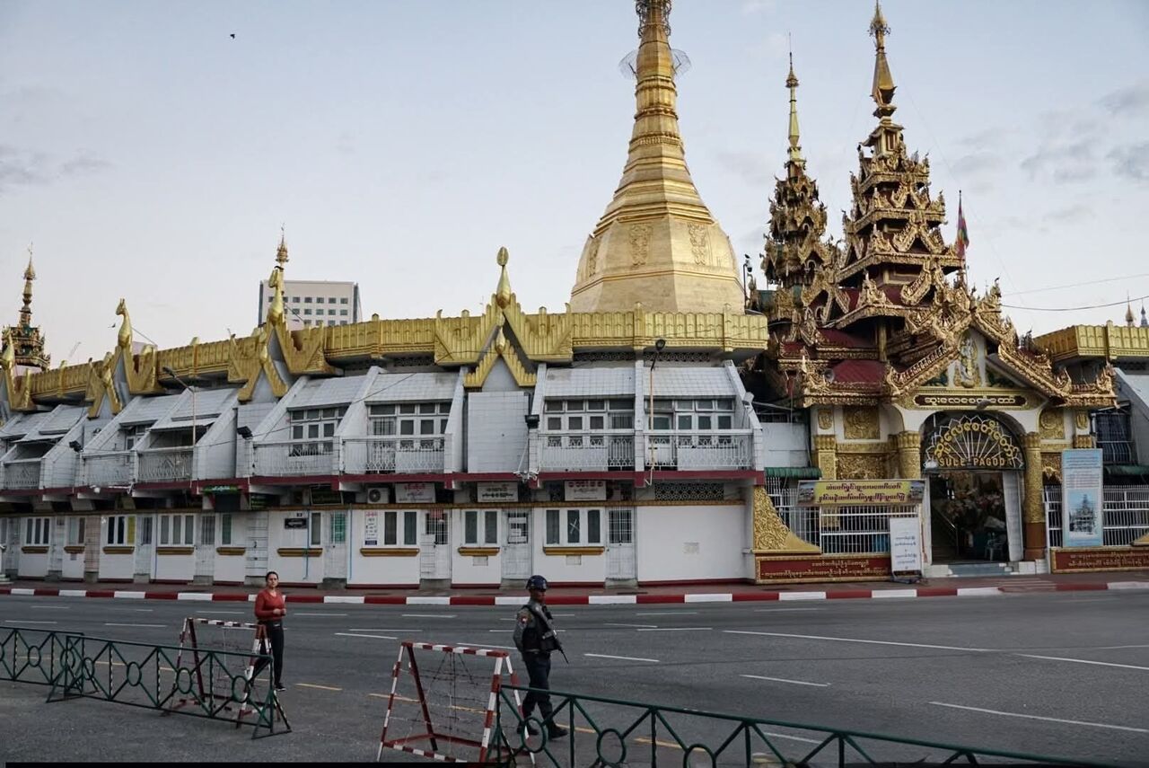 スーレーパゴダ近くにある第1投票所でも、投票者はほとんどおらず、待機している警備員の方が目立っていた。周辺の道路は赤い紐で仕切られ、車両の通行が規制されていた。