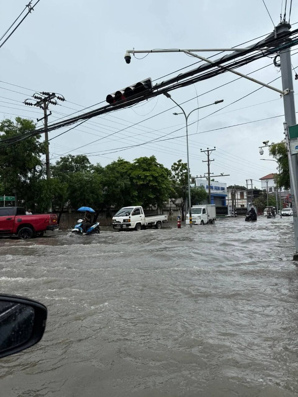 今朝10時頃からパゴダータタウンラムスン方面でも、バイクや人、車両が通行できなくなり、ボートでのみ移動している状況だと彼は述べた。
